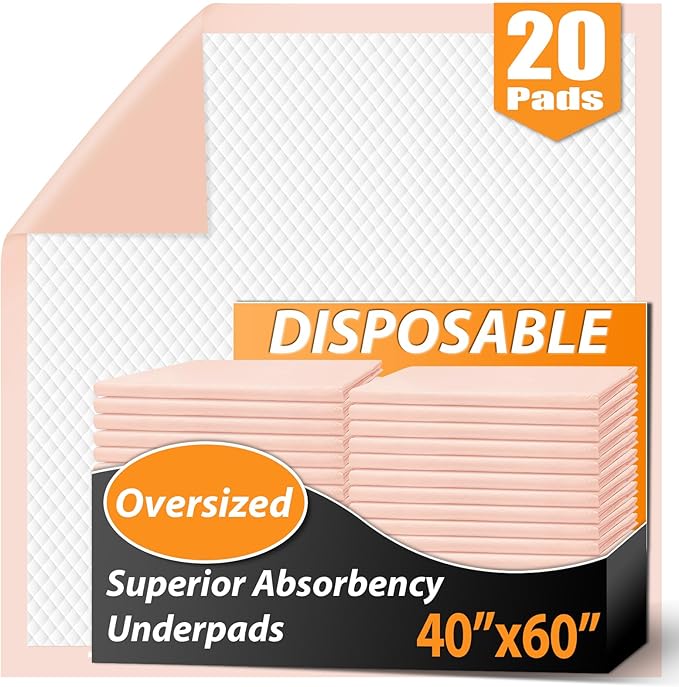 MKISS Oversized Bed Pads 40" x 60"(20 Counts), Heavy Duty Ultra Absorbent Underpads, Chucks Pads Disposable for Adults, Children, Babies, Elderly and Pets