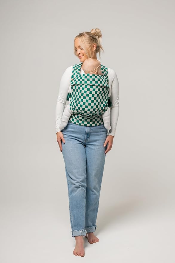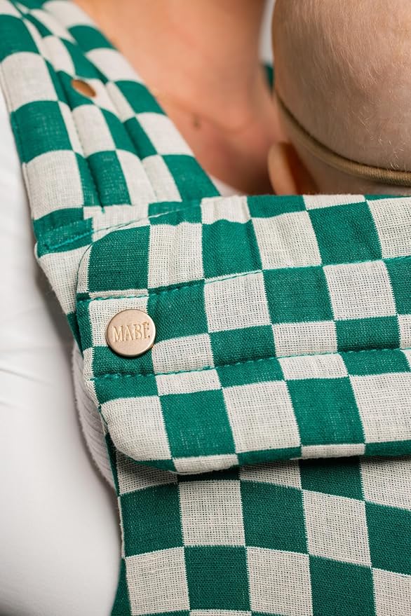 Mabē Monarch Ergonomic Baby Carrier – Premium Cotton Soft Structured Newborn to Toddler Carrier with Hip-Healthy Design, 3 Carry Positions (7-35lbs), Lightweight & Breathable (Evergreen Check)