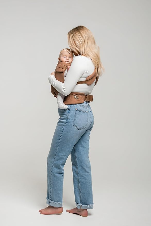 Mabē Monarch Ergonomic Baby Carrier – Premium Cotton Soft Structured Newborn to Toddler Carrier with Hip-Healthy Design, 3 Carry Positions (7-35lbs), Lightweight & Breathable, (Mocha)