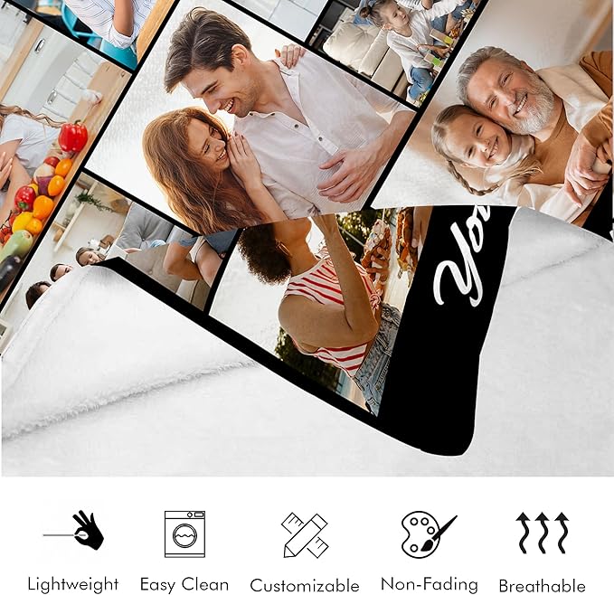 Custom Photo Blanket with Pictures - Personalized for Dad, Mom, and Friends