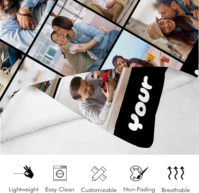 - 🎁🎁 Blanket wraps up love: The soft and warm blanket is printed with personalized photos or texts. It is a great gift for boyfriends and girlfriends, husbands and wives, and couples. It is also a gift for various anniversaries and birthdays. Imagine how surprised, touched, and hugged your loved ones will be when receiving such a special and unique gift. Spread it on the bed, it will accompany you to sleep every night, wrap you up, and wrap up your deep love.
