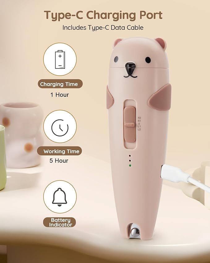 - USB-C Rechargeable: Go green with our USB-C rechargeable nail file baby. A single charge of just one hour gives you up to five hours of continuous use. Choose between two speed settings - 5000rpm or 6000rpm - catering to different needs within the family. Say goodbye to disposable batteries and hello to a more sustainable lifestyle