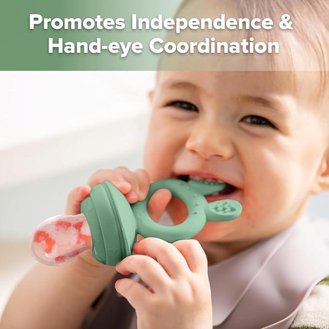 - Easy Baby Self Feeding: Place organic baby food, fresh fruits, purees or frozen fruits/ breast milk pieces into the pacifier feeder, your baby will enjoy sucking on it, while also help them build independence and learn to self-feed, perfect for baby led weaning