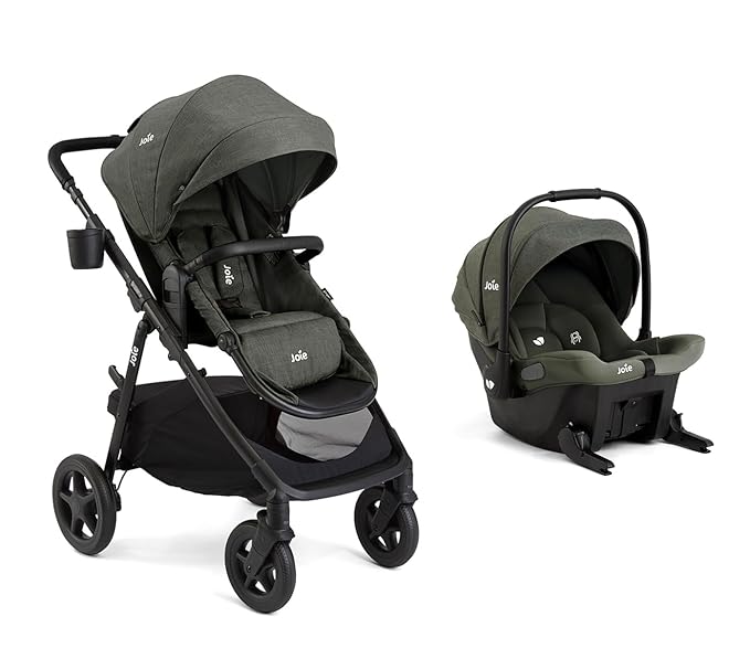 Joie Ginger and Mint Latch Travel System – 4-in-1 Travel System with Base-Free Infant Car Seat & Stroller, Built-in Latch for Easy Install and an Included All-Terrain Stroller (Evergreen)