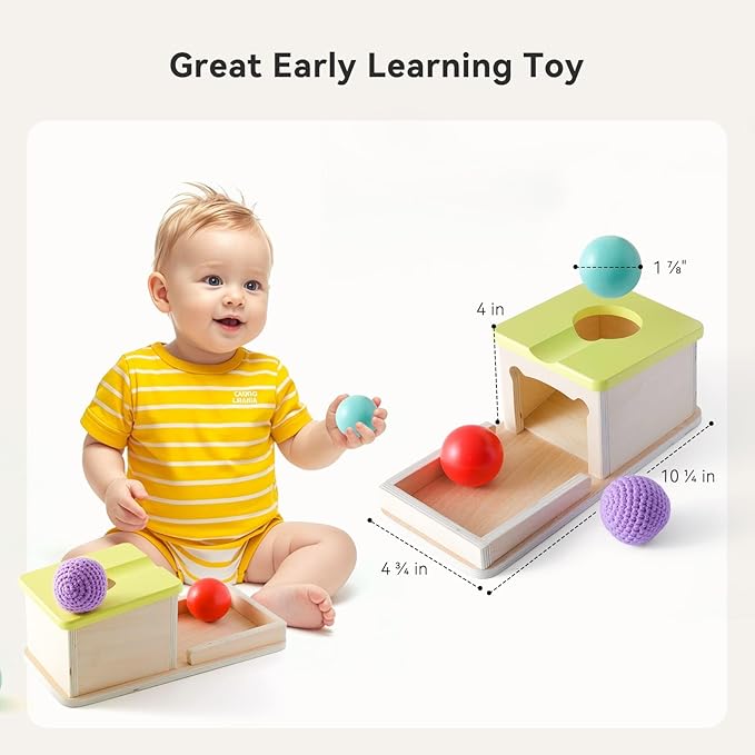 IEATFO Object Permanence Box with Tray Three Colored Balls (2 Wood+1 Knit) - Montessori Wooden Ball Drop Toy with Slide and Bear Shape - Fine Motor Skills Development Toy Age 1-3