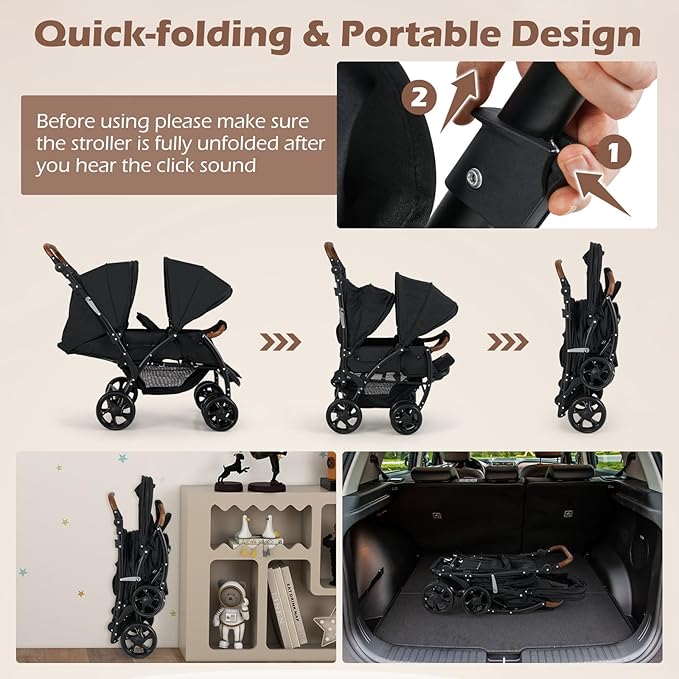 - Compact & Effortless Folding: Say goodbye to bulky versatile stroller with the quick folding mechanism of this baby double stroller. Easily fold it down to a compact size of 43.5" x 23" x 14", making it perfect for storage in trucks or small spaces.
