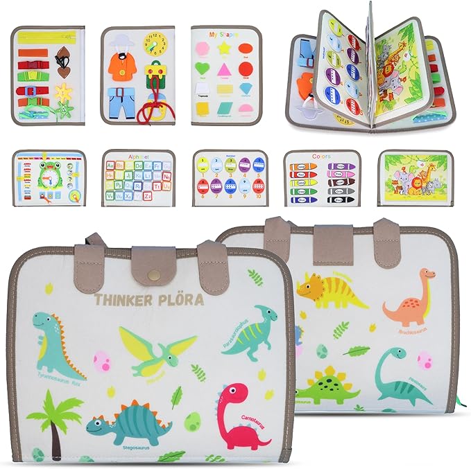 Thinker PLORA Toddler Busy Board – Montessori Toys for 1-4 Year Old Boys and Girls, Sensory Educational Activities for Learning Fine Motor Skills, Travel Toy for Car and Airplane