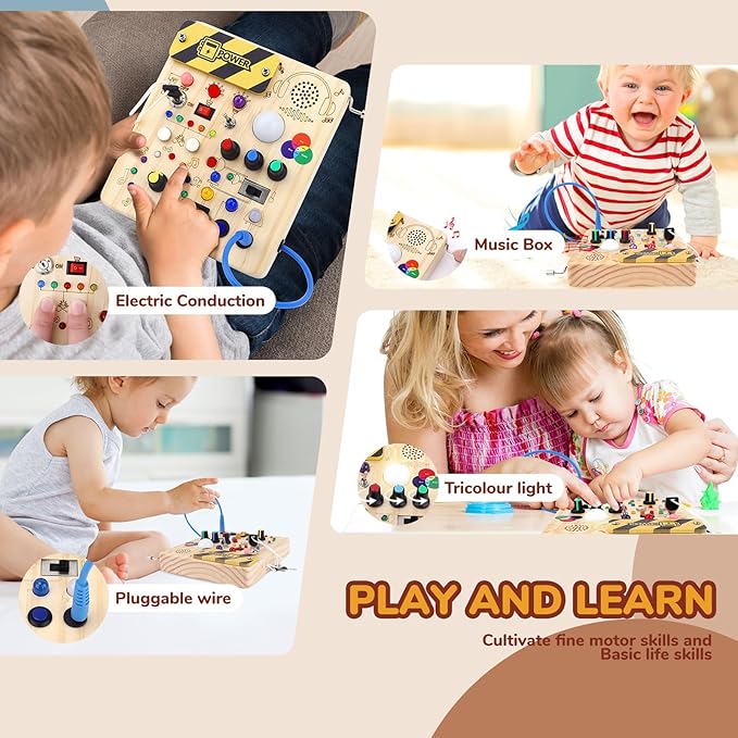 - Engaging and Educational Fun - This Montessori-inspired busy board makes a fantastic birthday or Christmas gift for young learners. It promotes essential skills such as color recognition, auditory processing, and fine motor development. This hands-on toy enhances hand-eye coordination and critical thinking abilities, ensuring hours of interactive learning. (Requires two AA batteries, not included.)