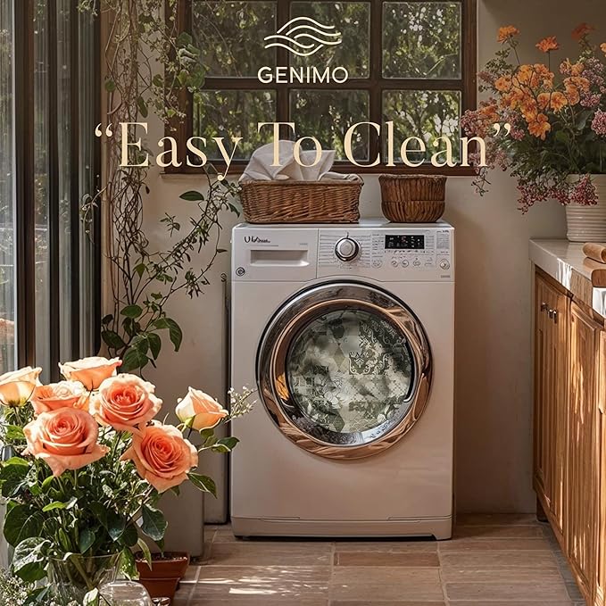 - Machine Washable: Our boho area rug is designed for convenience and fits seamlessly into any lifestyle. Machine wash with cold water on gentle cycle (not to add bleach), air dry or dry on air-only cycle without heat. For daily upkeep, use a vacuum cleaner or a quick wipe. Its VERY THIN design allows for easy removal of pet hair and other debris.