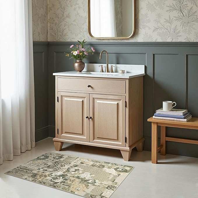 GENIMO Area Rug 2x3 Doormat, Machine Washable Low Pile Rugs, Small Floral Patchwork Retro Chenille Entryway Mat for Entrance, Hallway, Kitchen and Corridor, Taupe Gray