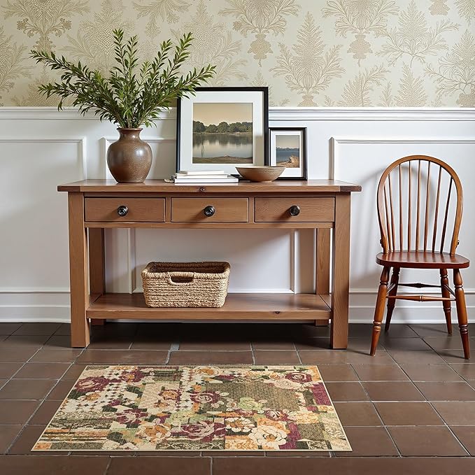 GENIMO Area Rug 2x3 Doormat, Machine Washable Low Pile Rugs, Small Floral Patchwork Retro Chenille Entryway Mat for Entrance, Hallway, Kitchen and Corridor, Auburn Cinnamon