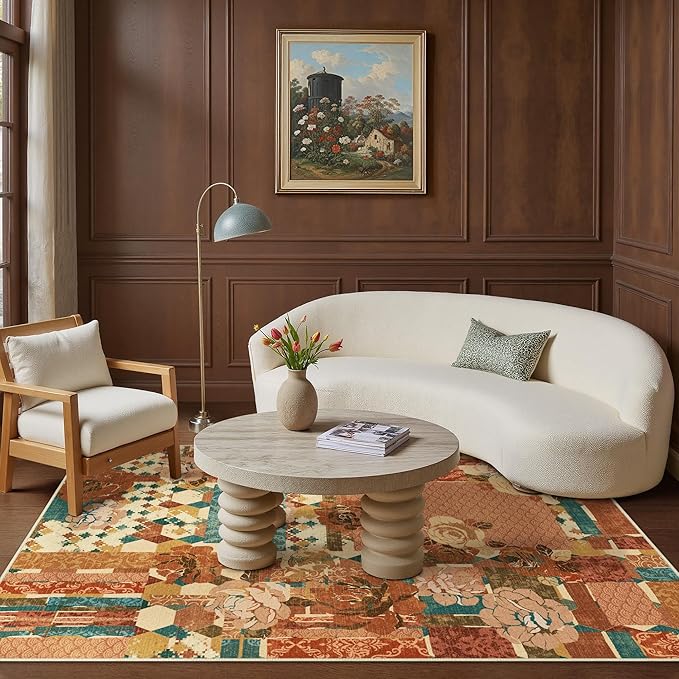 - Soft & Well Designed: This area rug captures the opulence of vintage design with intricate floral patterns in harmonious shades. Made from high-quality low pile soft fibers, it provids a certain degree of cushioning for the feet. This vintage rug skillfully captures a blend of classic, modern, boho, faded, delivering not just striking design but also a sumptuously soft texture. The pattern and color vividly match the images, with consistent coloring throughout the entire piece.