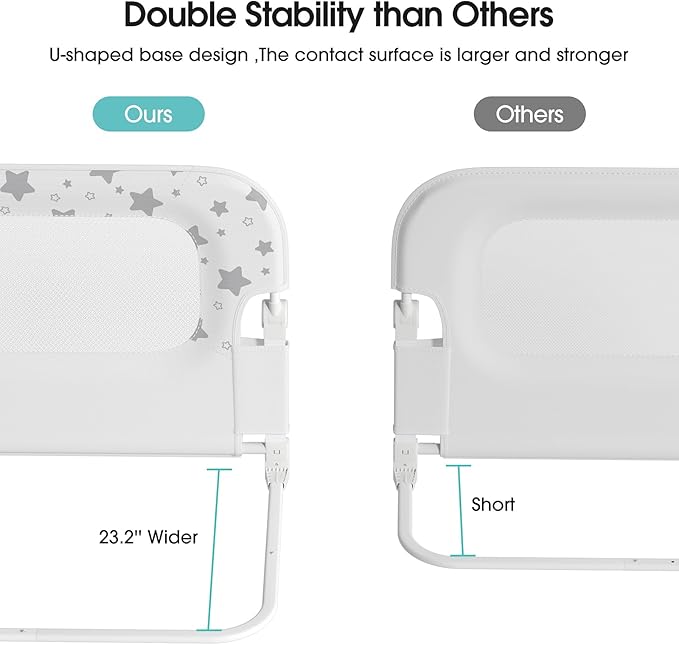 - Universal Fit Adjustable Guard: Fits beds from twin to queen size (35.7" length) and adjusts to any mattress thickness (26–34.7" height range). No more gaps or mismatched sizes—this patented design ensures a snug, secure fit for peace of mind, night after night