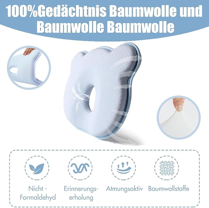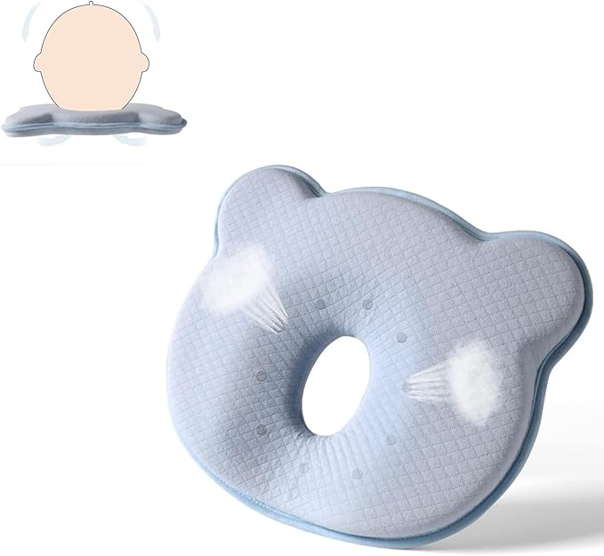 Memory Foam Baby Pillow,Cute Cartoon Bear Soft and Cozy Pillow, Breathable Bedding Set for Infants for Small Boys and Girls Prevent Flat Head