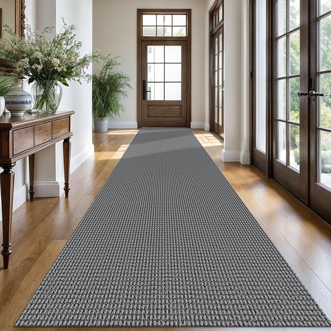 KOZYFLY Extra Long Runners for Hallways 3x18 ft Washable Kitchen Runner Non Slip Rubber Backed Hallway Rug Cotton Entryway Runner Rug Floor Carpet for Indoor Hall, Kitchen, Stair, Grey/Dark Grey