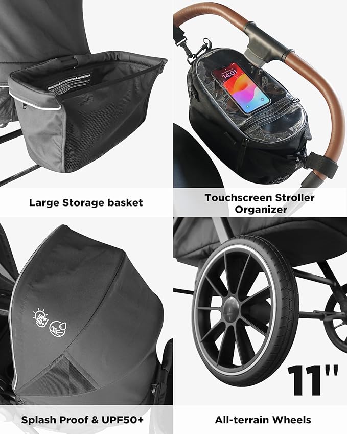 - Adjustable Canopy & Accessories: Keep your kids shaded and comfortable with a UV-protective adjustable canopy, while additional accessories add convenience for every trip