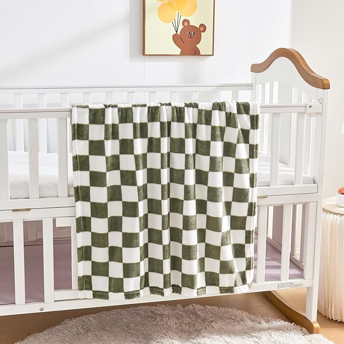 Yurhap Checkered Baby Blanket Fleece Baby Blankets for Boys, Ultra Soft Cozy Fluffy Infant Toddler Newborn Receiving Blankets for Crib Stroller, 30''x40'', Dark Olive