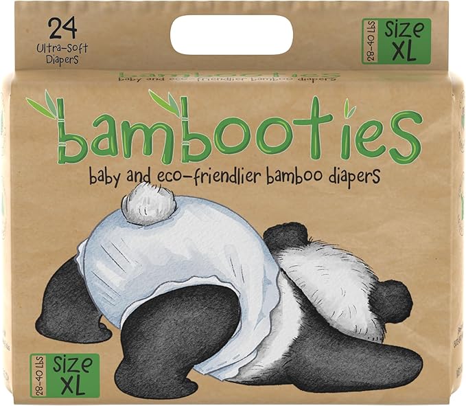 Bamboo Baby Diapers, Totally Chlorine Free for Sensitive Skin for Newborns to XXL. Hypoallergenic & Non Toxic Eco Friendlier Plant-Based Materials. TCF XL Size 5 (24 ct)