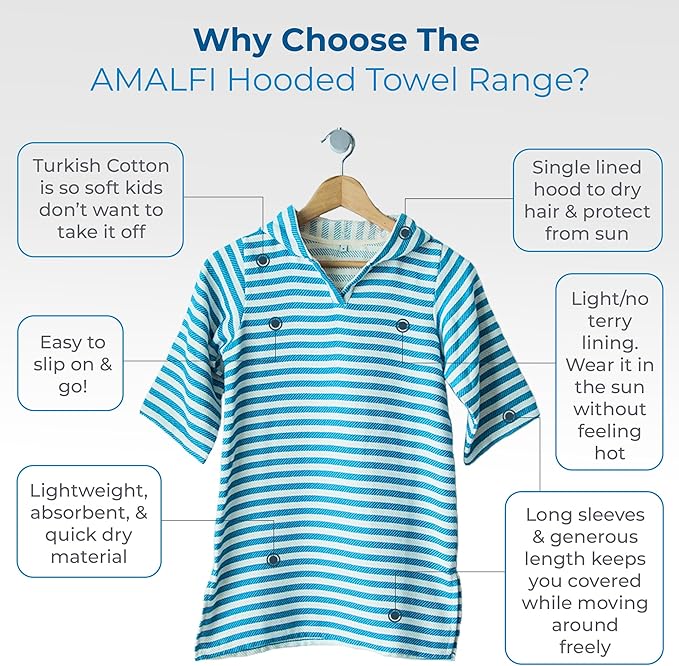 - DRIES WHILE ITS WORN β This highly absorbent poncho towel for kids has long sleeves and a hood thatβs convenient for drying hair & dries 3x faster than standard cotton towels