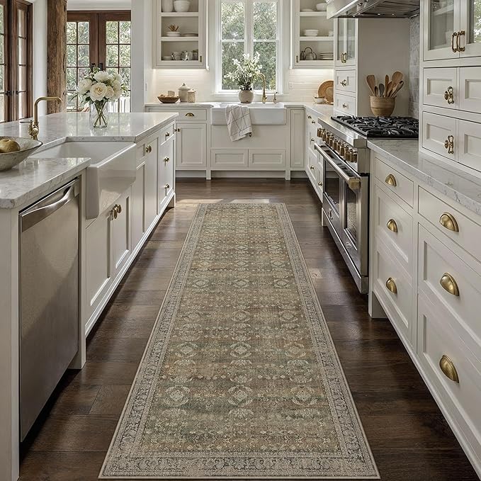 3x8 Brown Area Rug Runners for Hallways Washable Vintage Distressed Carpet Low Pile Non Slip Indoor Retro Soft Long Accent Rug Bedroom Kitchen Bathroom Laundry Dining Living Room