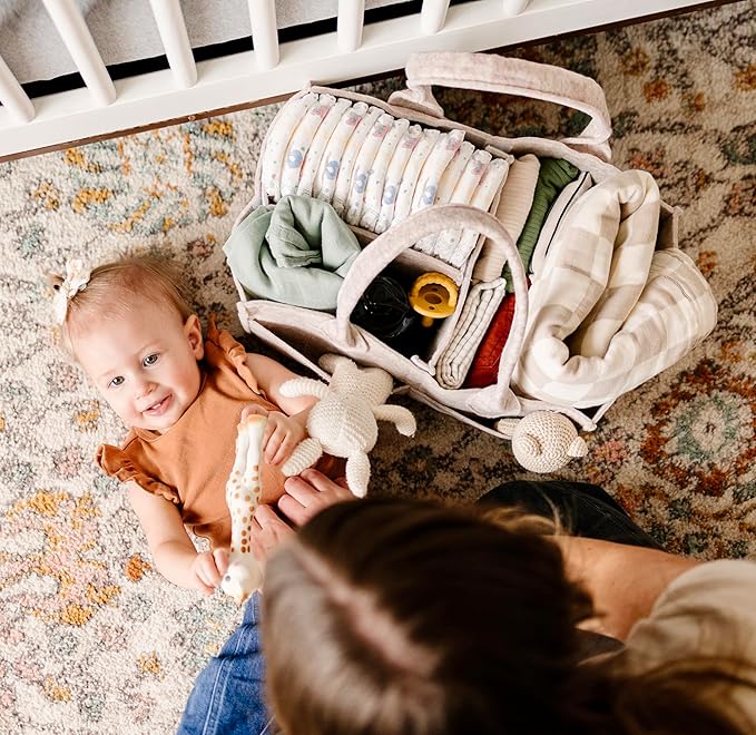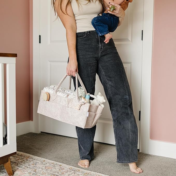 - TAKE IT ANYWHERE - Take Our Diaper holder organizer and use it as a car diaper caddy or simply a car caddy. The Diaper basket with long handles is foldable lightweight and portable which makes it ideal for traveling with kids