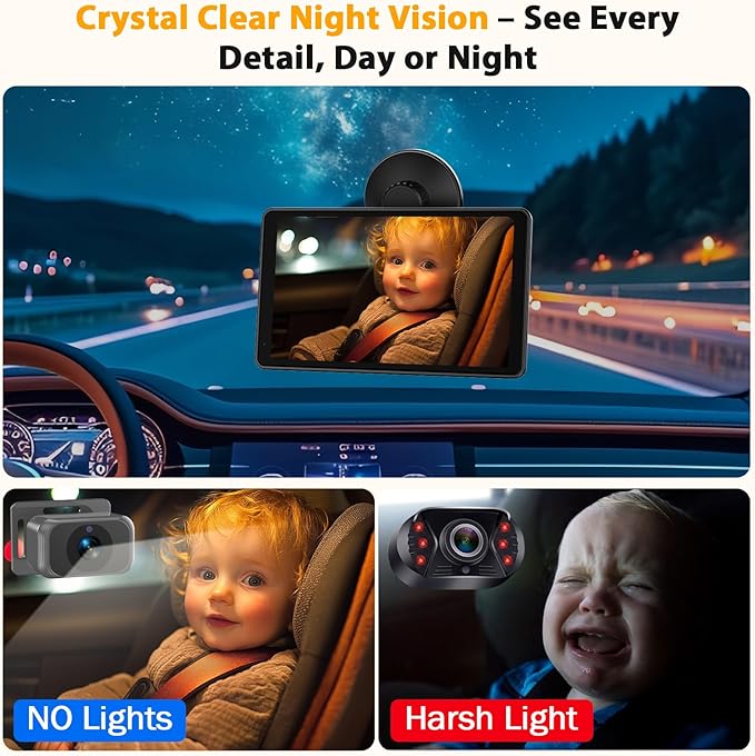 - Advanced Night Vision for 24/7 Safety: The night vision feature ensures you can monitor your kids safely at any time of the day or night, even in low-light conditions, making it perfect for long road trips or night-time commutes