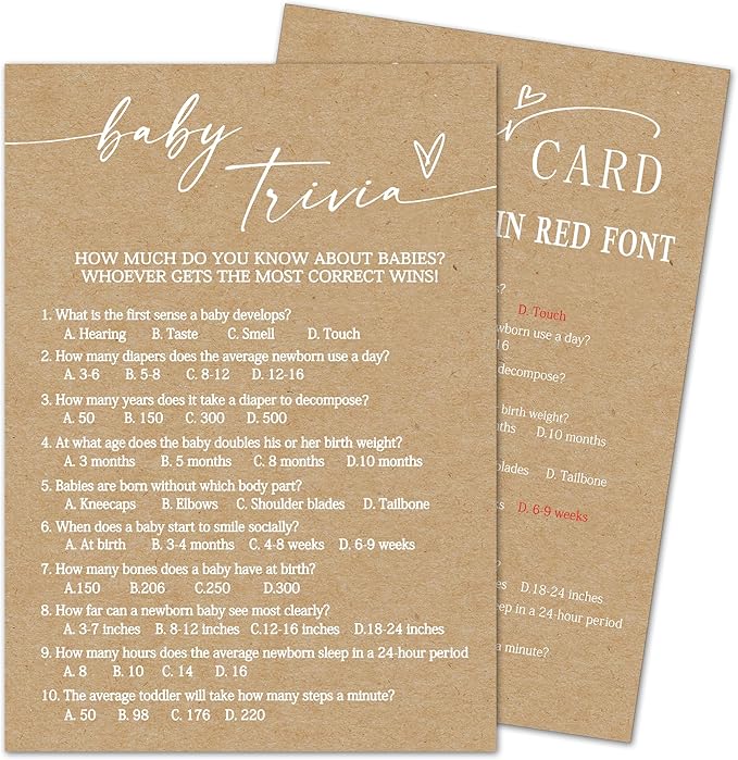 Baby Shower Game Cards - Set of 30 Baby Trivia Game - Double Sided Print Baby Announcement Gender Reveal Game Card for Parents to Be - Baby Shower Party Activities Supplies - B07