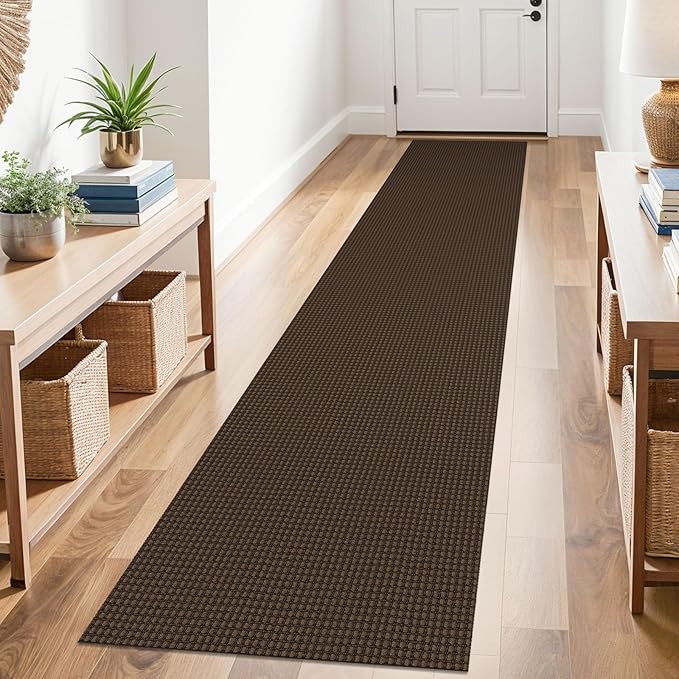 KOZYFLY Runners for Hallways 2x10 ft Washable Kitchen Runner Non Slip Rubber Backed Hallway Rugs Cotton Entryway Runner Rug Floor Carpet for Indoor Hall, Backdoor, Kitchen, Reddish Brown/Coffee