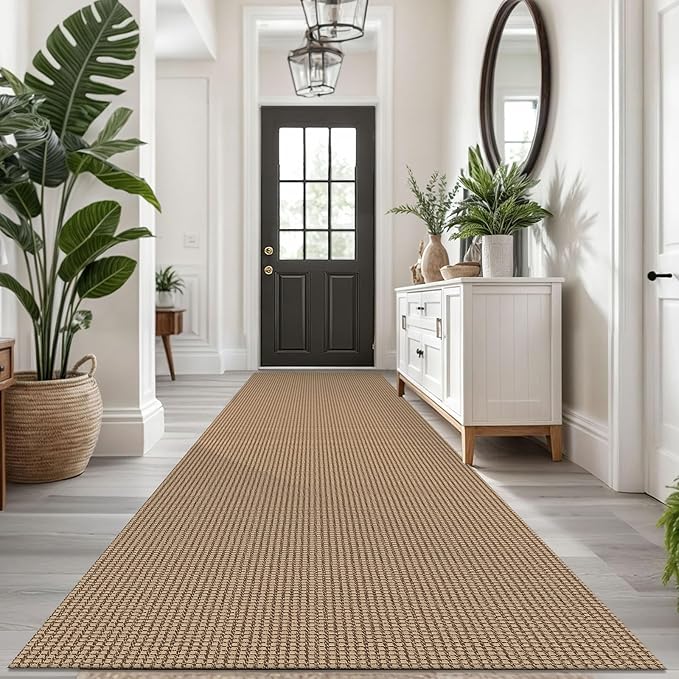 KOZYFLY Extra Long Runners for Hallways 3x14 ft Washable Kitchen Runner Non Slip Rubber Backed Hallway Rug Cotton Entryway Runner Rug Floor Carpet for Indoor Hall, Kitchen, Stair, Tan/Orange/Brown
