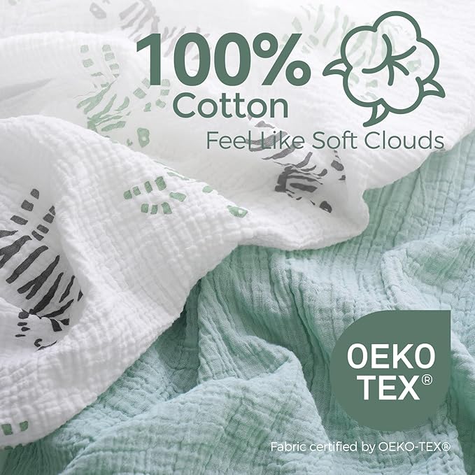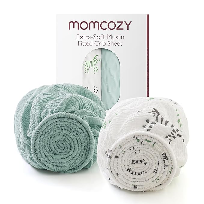 - 【100% Cotton, Quality and Softness All Around】Momcozy practical toddler ultra soft muslin fitted crib sheets are 100% made from quality American natural cotton, which is friendly for baby delicate skin. No weird odors or blurred designs, gentle and cushy cotton crib sheet provides a comfortable surface and a safe sleeping environment for babies helping soothe your newborn and keeping them calm when they are in sleep.