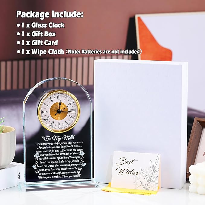 - Meaningful Design for Mother - The love between mother and child is warm, selfless and evermore. Just like transparent crystal, pure and clean. If you look for a unique gift for the best mom of the world, our glass clock is a special choice. Sentimental and affectionate words can warm and touch her heart. It's an emotional reminder of the moment between mother and child