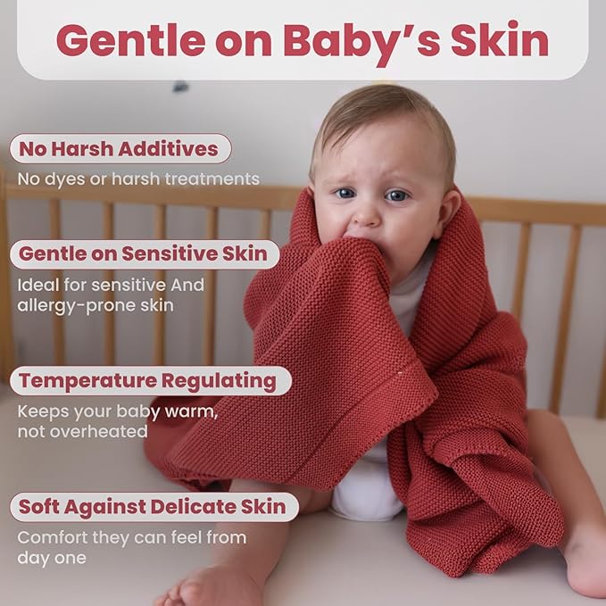 100% Organic Cotton Baby Knitted Blanket with Gift Box - Soft Toddler, Crib, Stroller Blanket - Neutral Swaddle and Receiving Blanket for Newborns, 30"x40", Amberglow