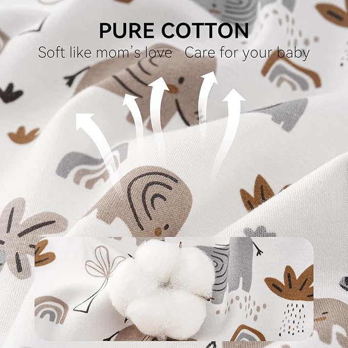 - Premium Fabric: Considering your baby's delicate skin, this sleep sack is made with pure breathable, soft cotton. We use a pre-shrinking process to minimize fabric shrinkage, so that the sleep sack for 0-3 and 3-6 months could stay cozy, warm, and soft after every wash.