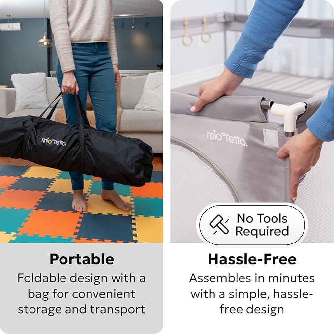 - Quick Setup & Portable Design – No tools needed! This play yard fence folds easily for compact storage and travel. Take it to grandparents' house, playrooms, or outdoor yards. A carrying bag makes it ideal for home or on-the-go use.