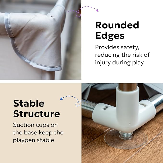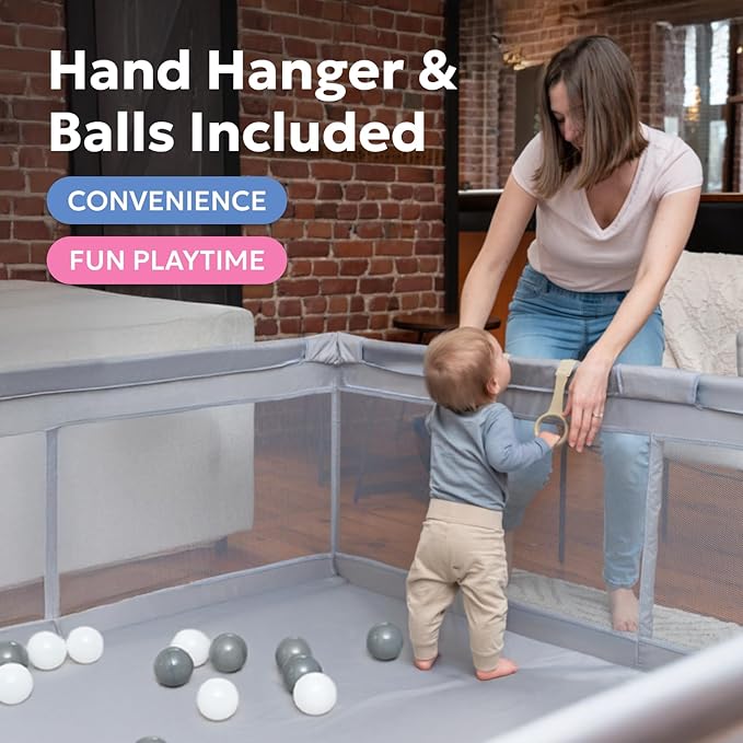 - Stylish & Modern Design for Any Space – This extra-large playpen blends seamlessly into any living room, playroom, or nursery. The neutral colors complement home decor while keeping toys contained and providing a secure play space for your child.