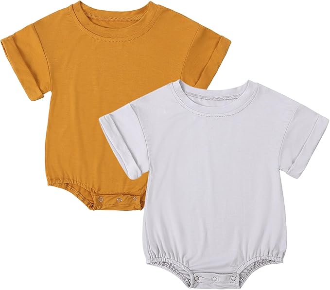 DEFAHN 2PCS Visocse from Bamboo Baby Rompers Unisex Onsies Solid Short Sleeve Baby Bodysuit 0-24 Months