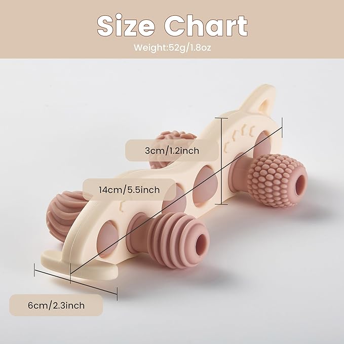 - SUITABLE SIZE – The racing car teether has a streamlined shape that is suitable for baby's small hands to grasp. They have chewing points of various shapes to massage the gums with different touches, bringing full comfort to the baby.