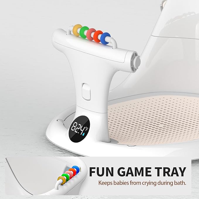 - 【Water Temperature Display Design】This baby bath chair has an upgraded water temperature display function. As long as the bottom of the bath chair comes into contact with water, the temperature display will show the current water temperature in both Fahrenheit and Celsius. This prevents the baby from being scalded by overly hot water, ensuring a safer bathing experience for the baby.