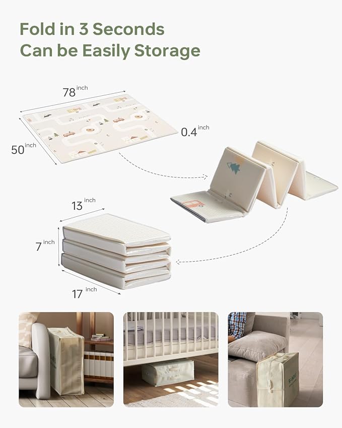 - [Foldable & Portable]: Our crawling mats are easy to fold and spread out, and easy to store and carry. So you can always take it outside to enjoy a pleasant outdoor time with your baby!