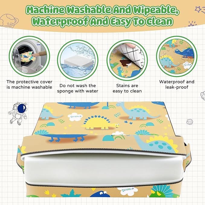 - 【Waterproof and Easy to Clean】The high-elastic TPU film cover is waterproof, repelling spills and protecting the sponge from moisture, which is more wrinkle-resistant than ordinary PU leather and is an excellent fabric for maternal and child products. Cleaning is a breeze—just wipe with a damp cloth or baby wipe to remove stains