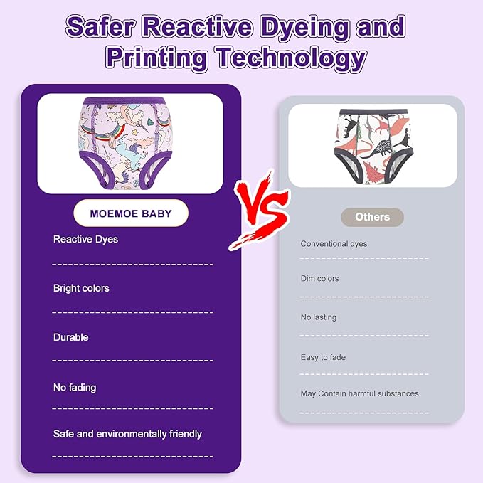 - Reusable & Fun Designs: Hand or machine washing are available for our toddler training underwear it is great for parents saving money on disposable diapers. With a variety of fun colors and patterns, potty training can be a little more exciting for your child, making them excited to wear their new "big kid" training underwear can boost baby’s confidence and decrease their feelings of embarrassment