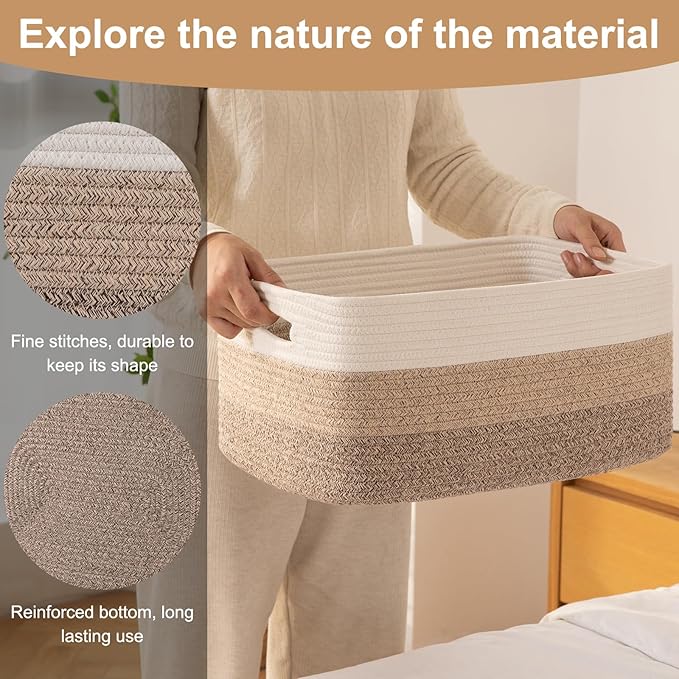 - Soft and Durable: Hand-stitched from high-quality natural cotton rope. Our baskets are very soft and baby-friendly. Seamless design, with no odor or sharp edges, not easy to tear, Great for nurseries storage and closet organization