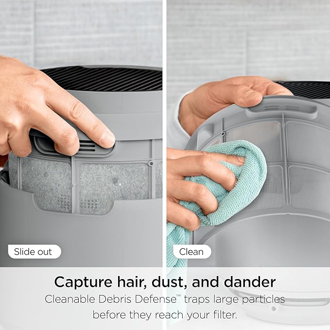 - OPTIMIZE YOUR FILTRATION: Debris Defense pulls in particles like hair and dander, preventing buildup on your HEPA filter to ensure long-lasting performance. Easily remove the screens and wipe clean in seconds.