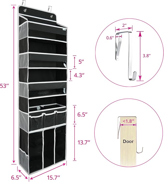 - STRONG SUPPORT, STRONG LOAD-BEARING CAPACITY, EASY TO INSTALL. At the bottom of each storage bin, additional cardboard support is added, and from the top to the bottom, the side curtains on both sides are firmly sewn for fixation, making the entire hanging bag more stable and firm. After testing, the load-bearing strength can reach 45 pounds. Easy to install, comes with two thick metal hooks that are suitable for most types of doors. No tools are needed, simply hang them up to complete the installation.