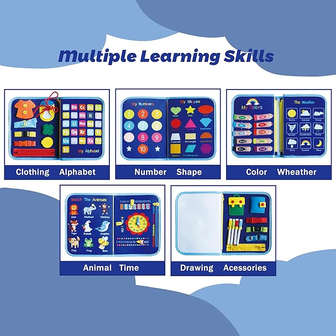 - 📚[Master Practical Preschool Skills] This toddler learning toy is carefully designed to teach essential life skills. Your child can practice zipping, buttoning, lacing, and shoe lacing while also learning colors, shapes, and numbers through fun, hands-on activities.