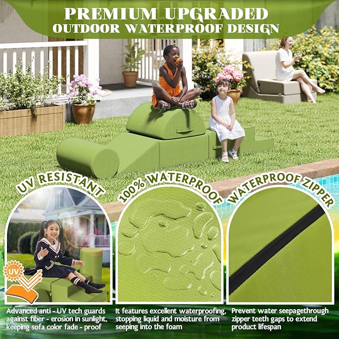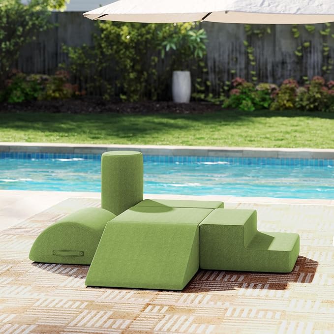 jela Kids Foam Climbing Blocks 6Pcs Soft Play Equipment Waterproof Fabric, UV Resistant Toddler Climbing Toys Indoor& Outdoor Soft Play Climbing, Lightweight Climbing Blocks forToddlers (Green)