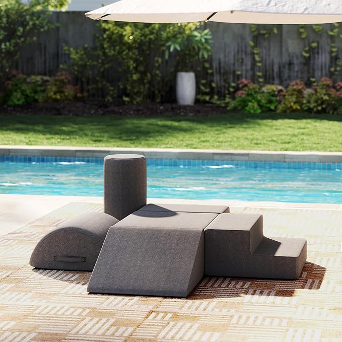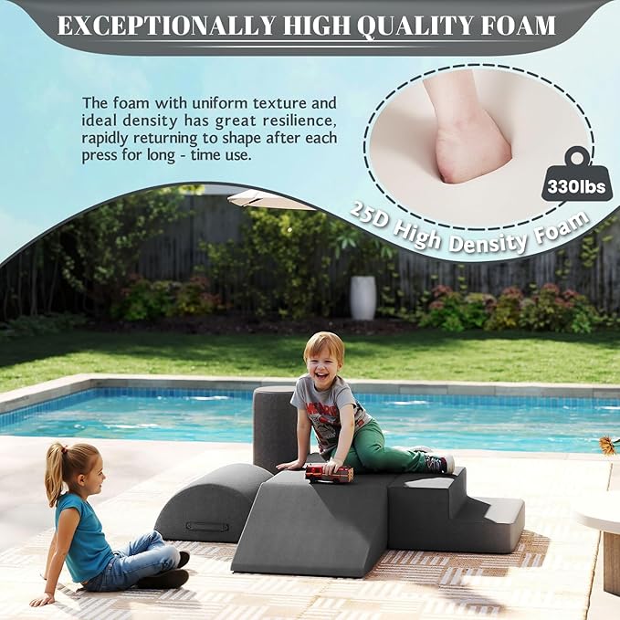 jela Kids Foam Climbing Blocks 6Pcs Soft Play Equipment Waterproof Fabric, UV Resistant Toddler Climbing Toys Indoor& Outdoor Soft Play Climbing Set, Lightweight Climbing Blocks for Kids (Darkgrey)