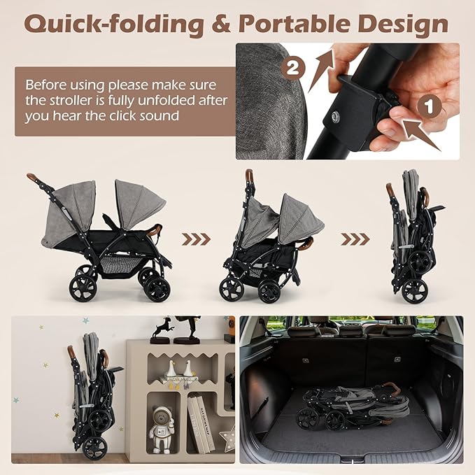 - Compact & Effortless Folding: Say goodbye to bulky versatile stroller with the quick folding mechanism of this baby double stroller. Easily fold it down to a compact size of 43.5" x 23" x 14", making it perfect for storage in trucks or small spaces.