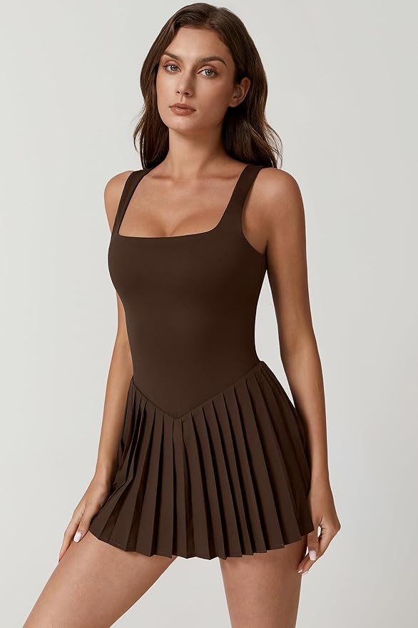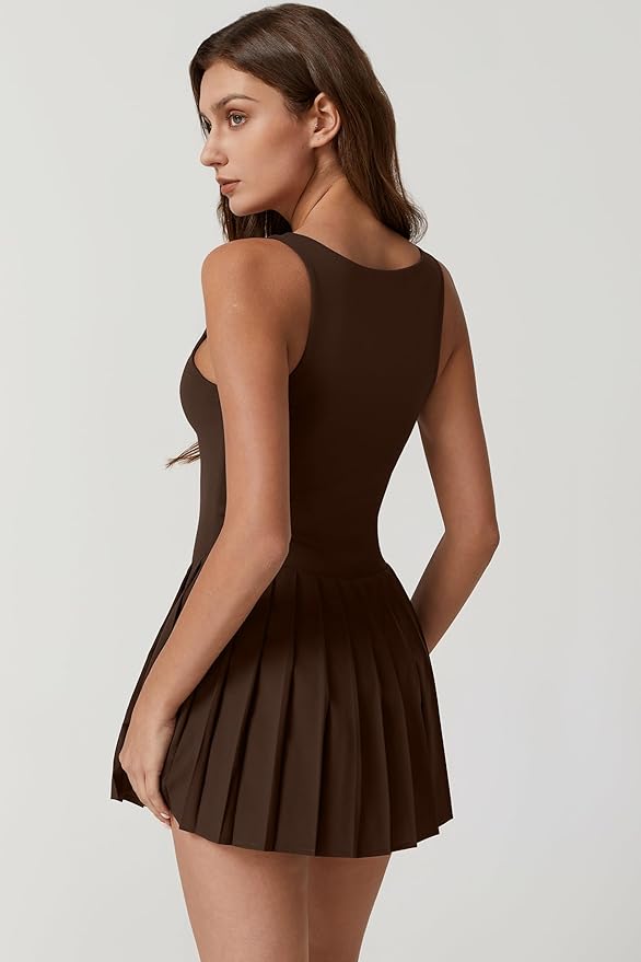 • Fashion-Forward Design: The QINSEN Womens Square Neck Tennis Dress features a stylish square neck, sleeveless design, and a I-shaped back complemented by a playful pleated skirt, making it the perfect blend of fashion and casual wear for active women.