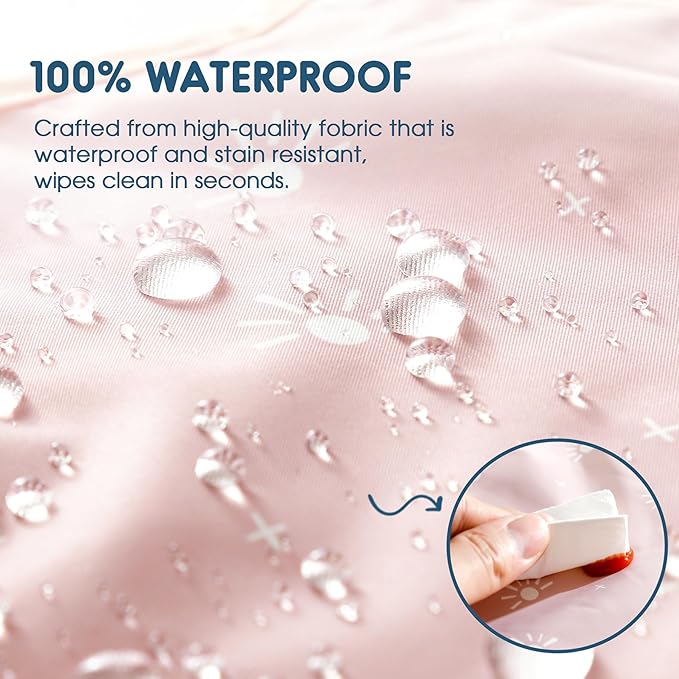 - ULTRA SOFT AND WATERPROOF MATERIAL: GRSSDER waterproof baby bibs are crafted from silky-soft, lightweight and high-density microfiber fabric with high quality TPU material that is luxuriously gentle on baby senstive skin with zero plastic-like feel. It's waterproof and stain resistant, wipes clean in seconds. These waterproof bibs for baby boy or girl are designed to keep messes at bay.